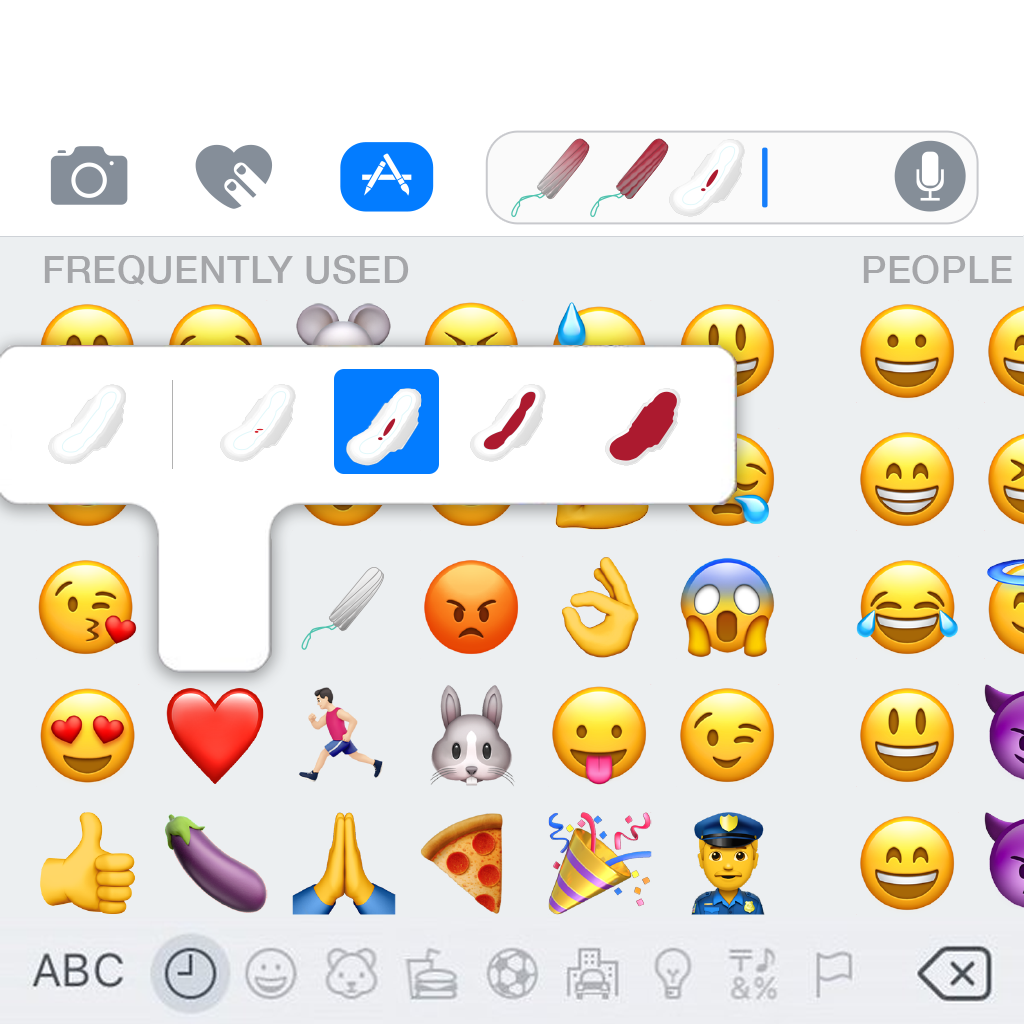 I thought of another manner we can bring the matter to the mainstream - emojis. Emojis are used by people with smartphones all day, almost every single day. They provide an easy way to express how you're feeling. My period emojis show a gradual increase in staining perhaps to make women more comfortable talking about their symptoms, problems and health during periods.